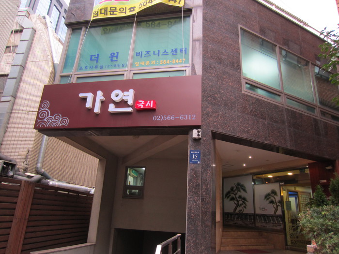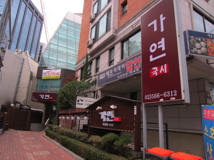가연국시는 선릉역 5번 출구로 나와 우회전해서 조금만 가면 사거리 지나 두번째 건물에 있습니다.