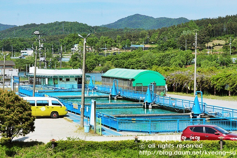 식당의 바로 옆에는 커다란 송어장이 있습니다~