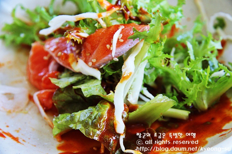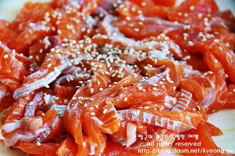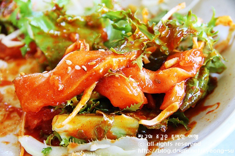 송어의 살이 원래 붉은색이다 보니 초장이 묻지 않은것처럼 보이네요 ㅎㅎ