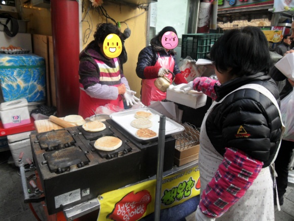 "진아~~, 남대문 시장서 파는 붕어빵이 좀 비싼 이유을 먹어보니 알것만 같어. 달달한 팥 앙고가 많이 들어 있어서이고 그리고 이건 붕어가 아니라 잉어여서 그런거야."