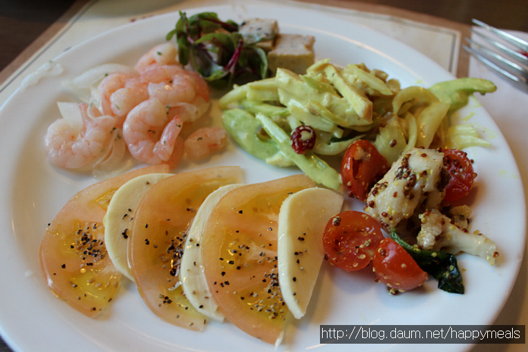 새우샐러드로 바뀌었고, 연어를 통째로 올려