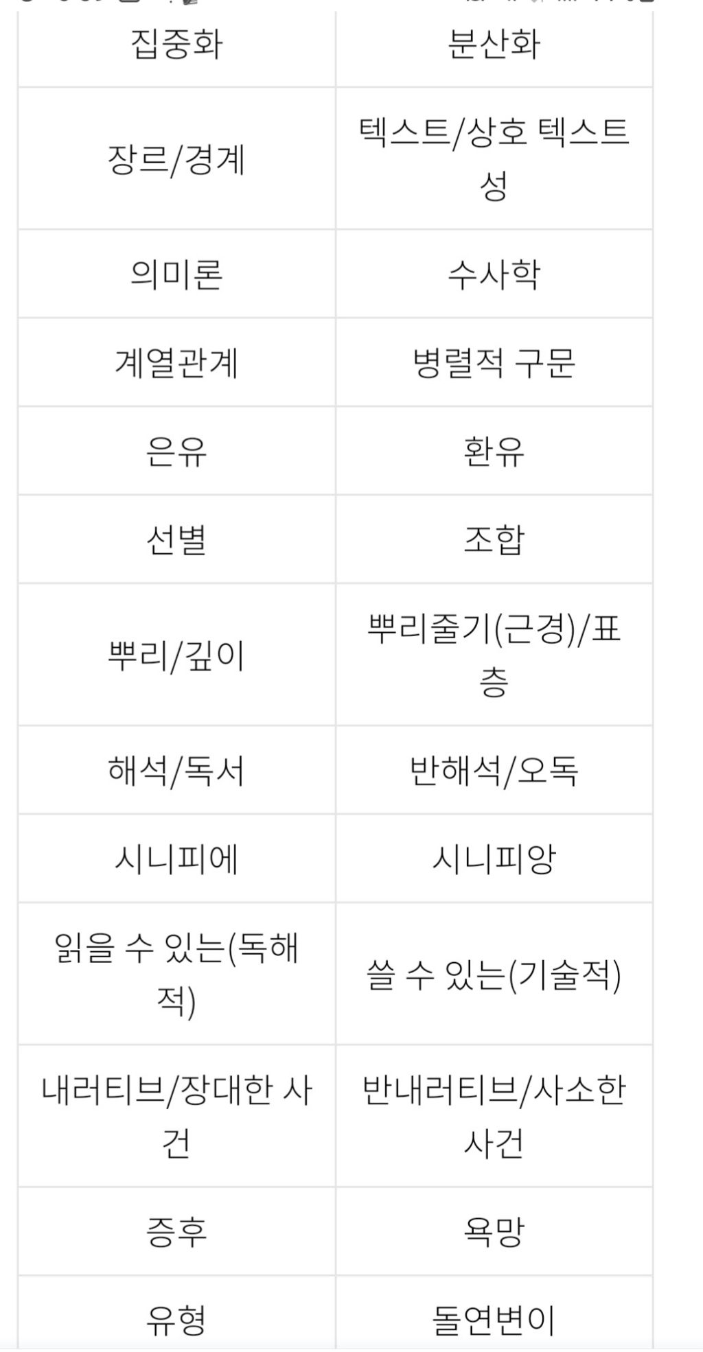 ※ 참고문헌: 포스트모더니즘 시 교육 방법 연구(김보라, 2009)