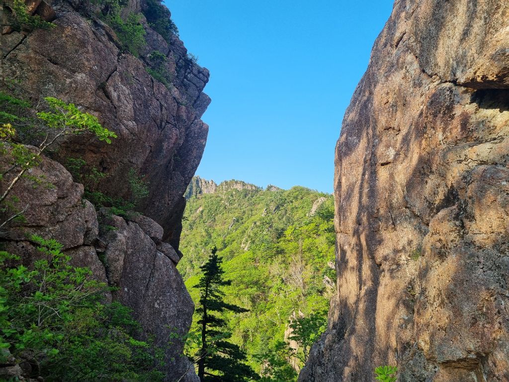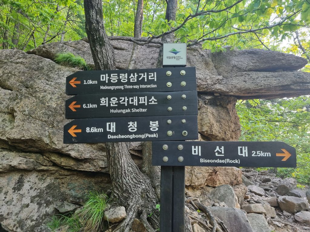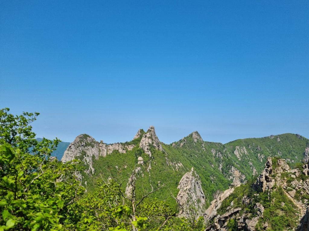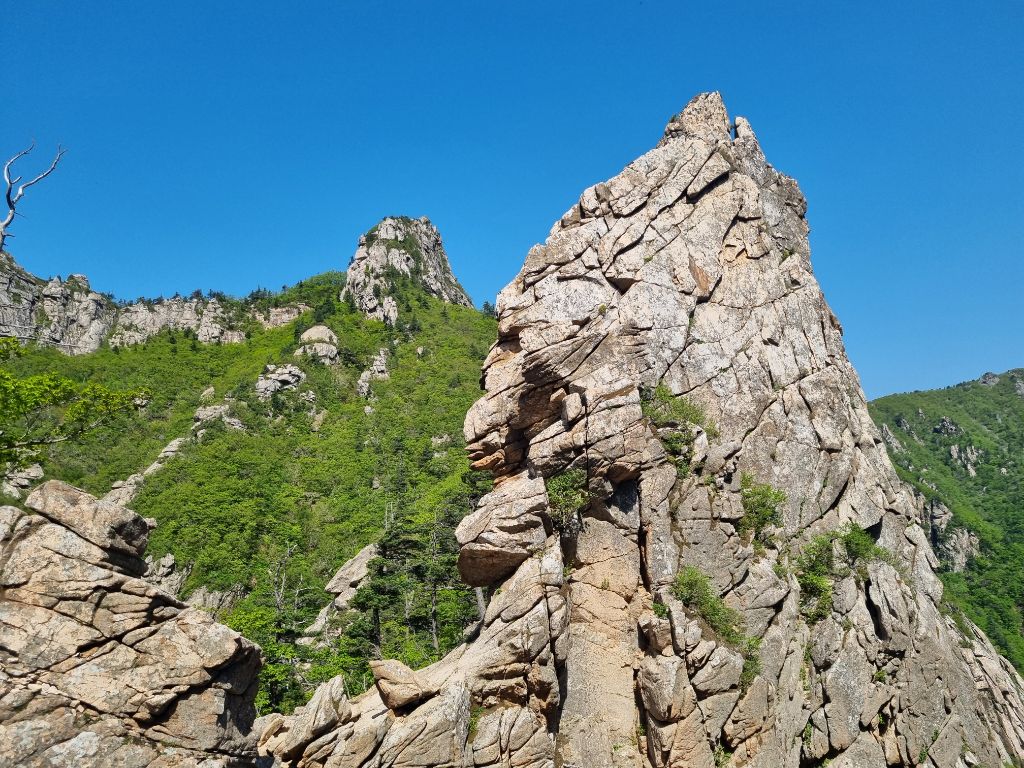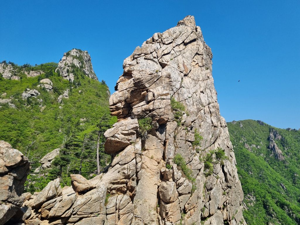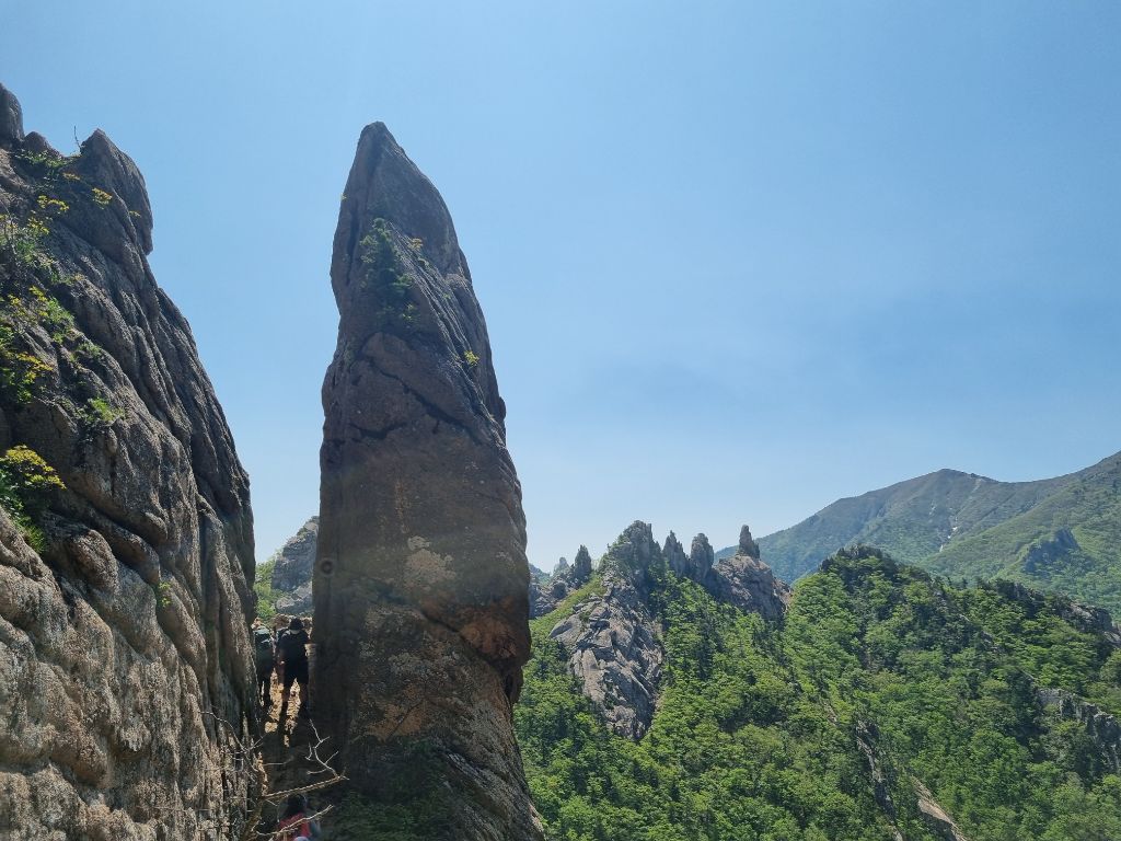 5윌18일21시대구출발 19일02시50분산행시작.설악동탐방센터~비선대 ~금강굴 ~마등령삼거리 ~공룡능선 (마등봉. 나한봉 .1275봉.신선봉)무너미고개~천불동계곡 ~신흥사 ~설악동탐방센터.설악의비경이 감탄연발 이제는체력의 한계를 느낀다.