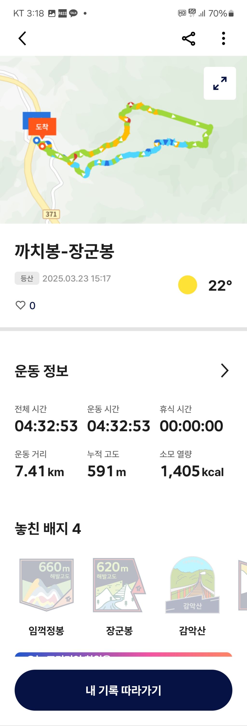 경기파주 감악산 3월23일날씨맑음16도 미세먼지 많음 작성자산너머|작성시간25.03.23|조회수26 목록 댓글 1 글자크기 작게가 글자크기 크게가 감악산 출렁다리 ~법륜사~까치봉 ~감악산 ~임꺽정봉 ~장군봉 ~출렁다리.100명산까치봉 구정상석 다음검색 현재 게시글 추가 기능 열기 북마크 공유하기 신고 센터로 신고 댓글 댓글 1 댓글쓰기 댓글 리스트 작성자진주남강(손기욱) | 작성시간 25.04.14 올만에 댓글 전체보기