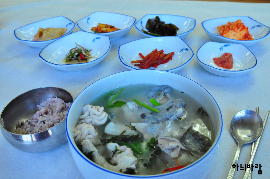 어지간히 구경을 한 다음 식당 한곳을 골라 들어가서 대구탕을 주문했다.
