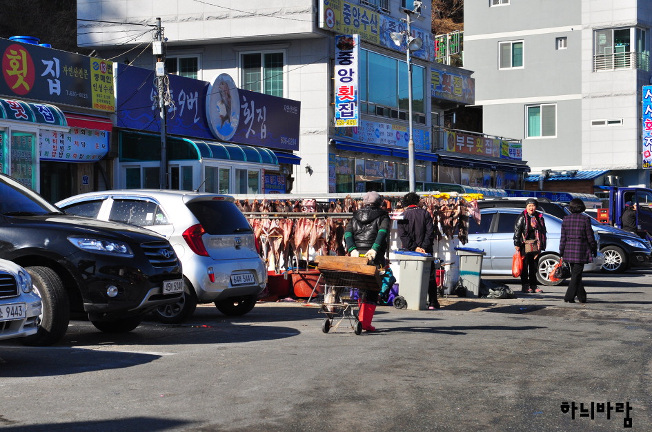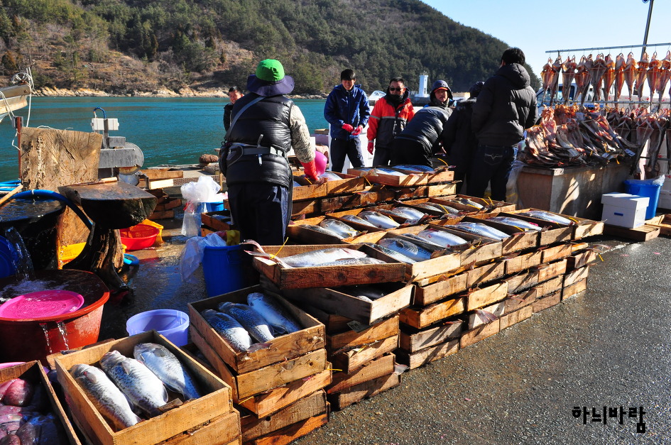 대구를 사러오는 사람들로 작은 항구에는 차를 세울 곳이 없을 정도였는데