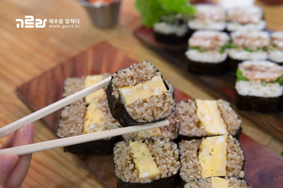 전복과 돔베고기의 매력을 한 입에 느낄 수 있는 전복 김밥과 돔베 김밥!