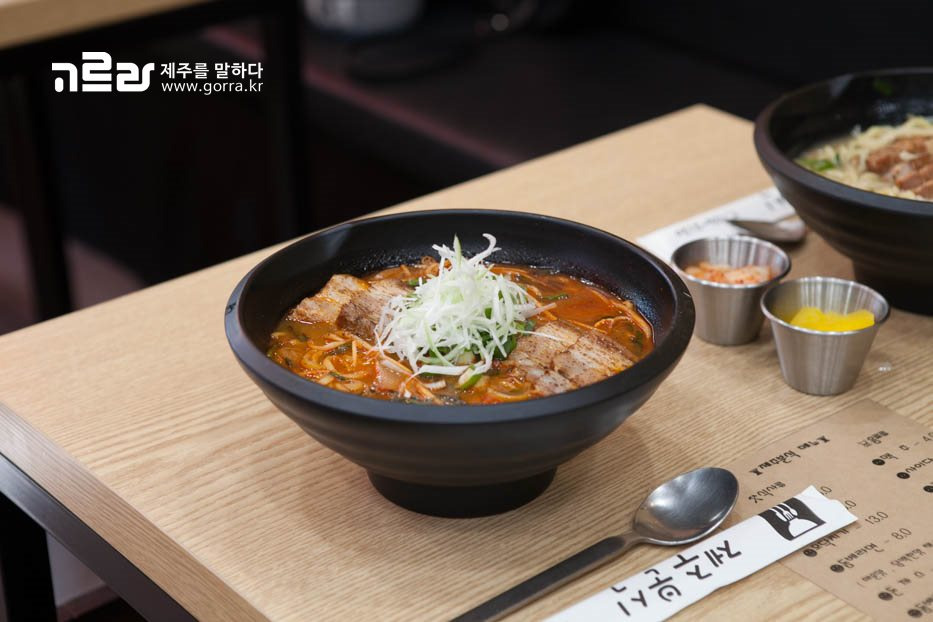 진한 국물을 좀 더 얼큰하게 먹고 싶다면, 매운 돔베라면을 추천합니다!