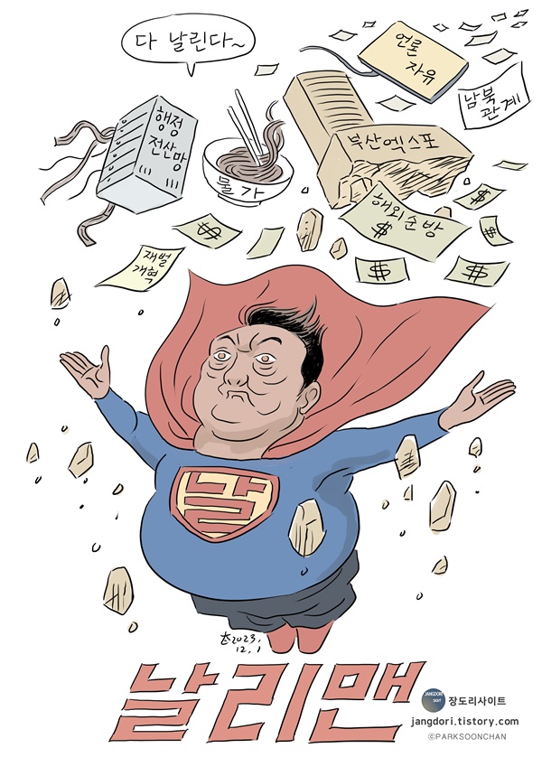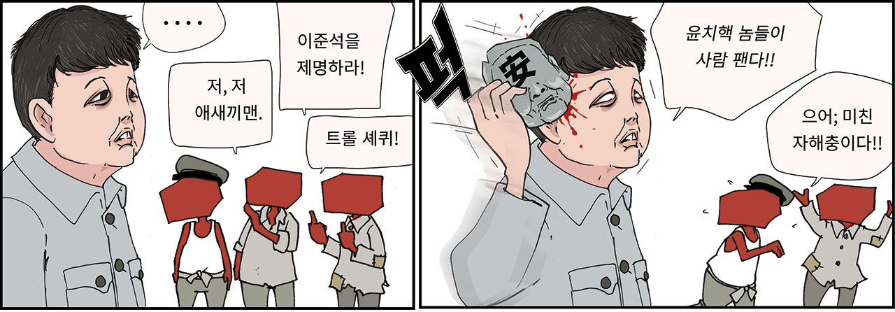 본 만평은 한국 네티즌본부에서 작성합니다. '경고: 변조 절대 금지'