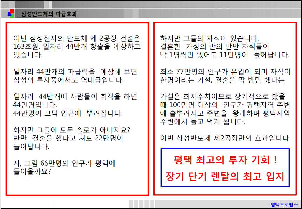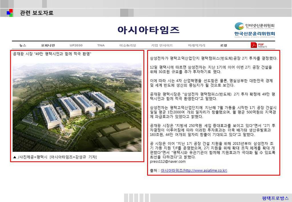 100조 투자 삼성전자 입주 (평택 반도체 공장)