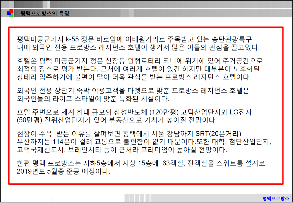 평택 프로방스가 수익형 레지던스 호텔의 신화를 만든다.