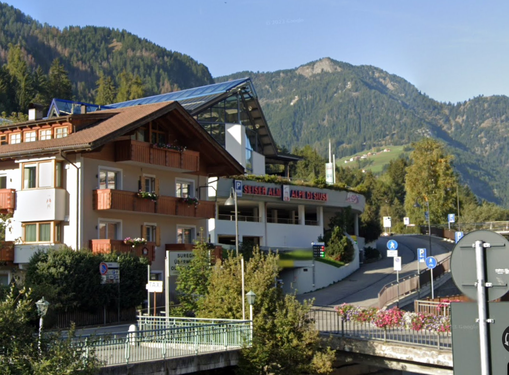 Seiser Alm Alpe di siusi 케이불 카 건물이 나타나고 지하 주차장에 주차를 하고 올라가면