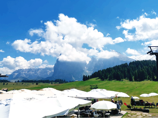 원래 이 호텔 앞에서는 동쪽으로는 세체다, 셀라, 사쏘롱고 그룹이 보이고 돌로미티의