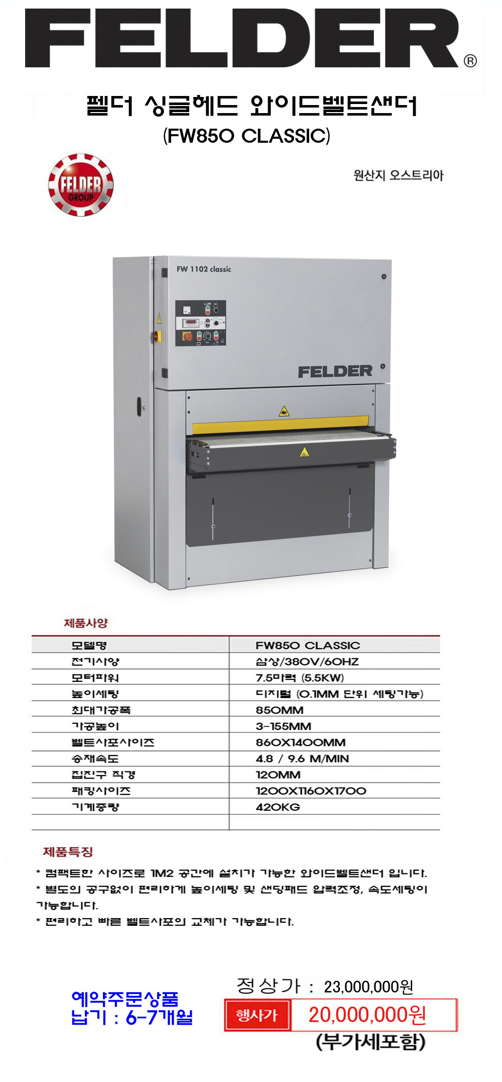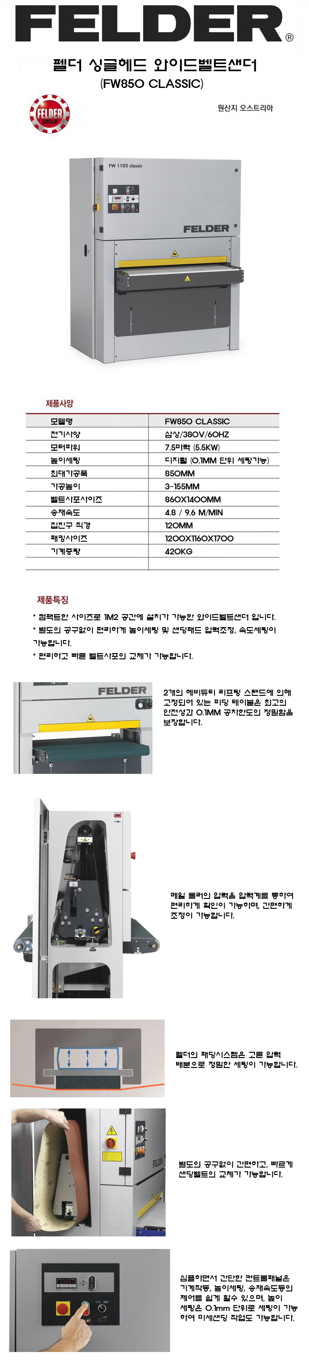 펠더 850MM 싱글헤드 와이드벨트샌더 (FW850 CLASSIC) : 1조한정 (예약배송상품 : 납기 6-7개월)