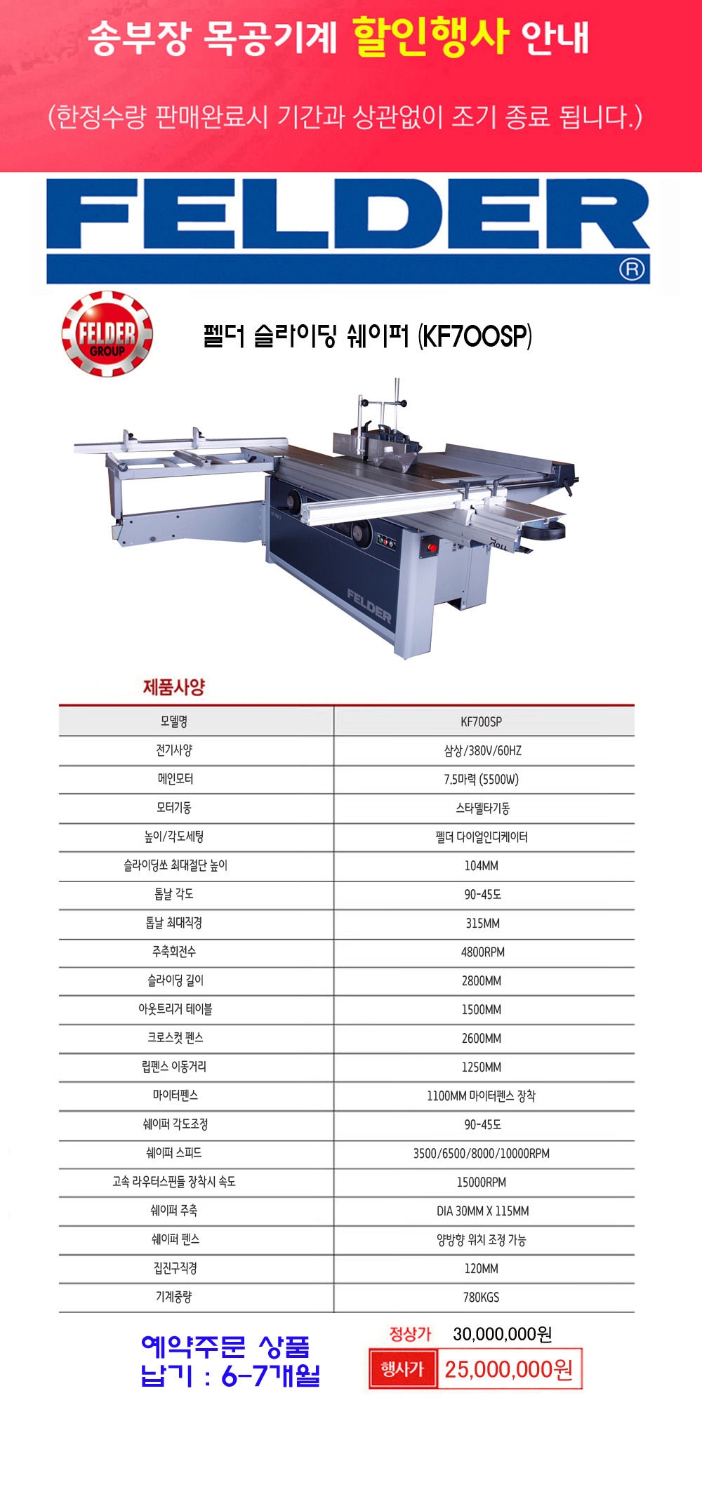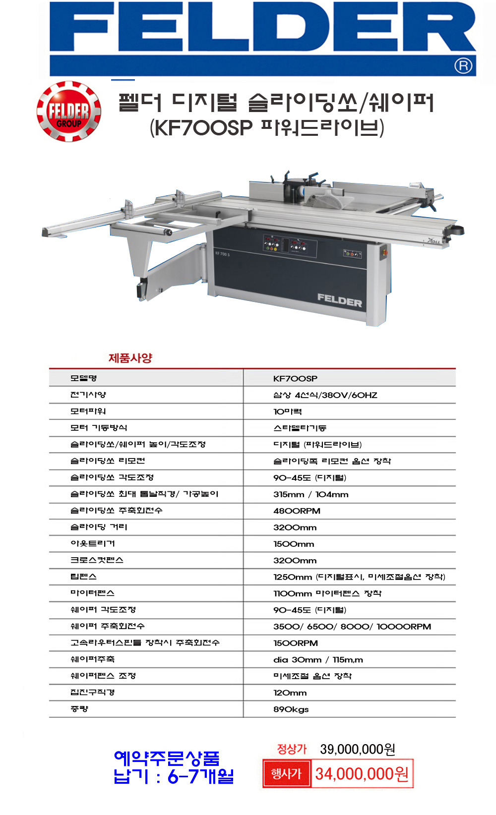 펠더 슬라이딩쏘 쉐이퍼 (KF700SP) : 1조한정 (예약배송상품 : 납기 6-7개월)