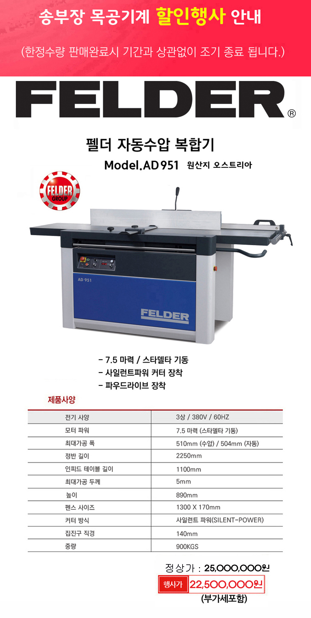 펠더 504MM 사일런트커터파워 자동대패 D951 : 2조한정 (배송상품)