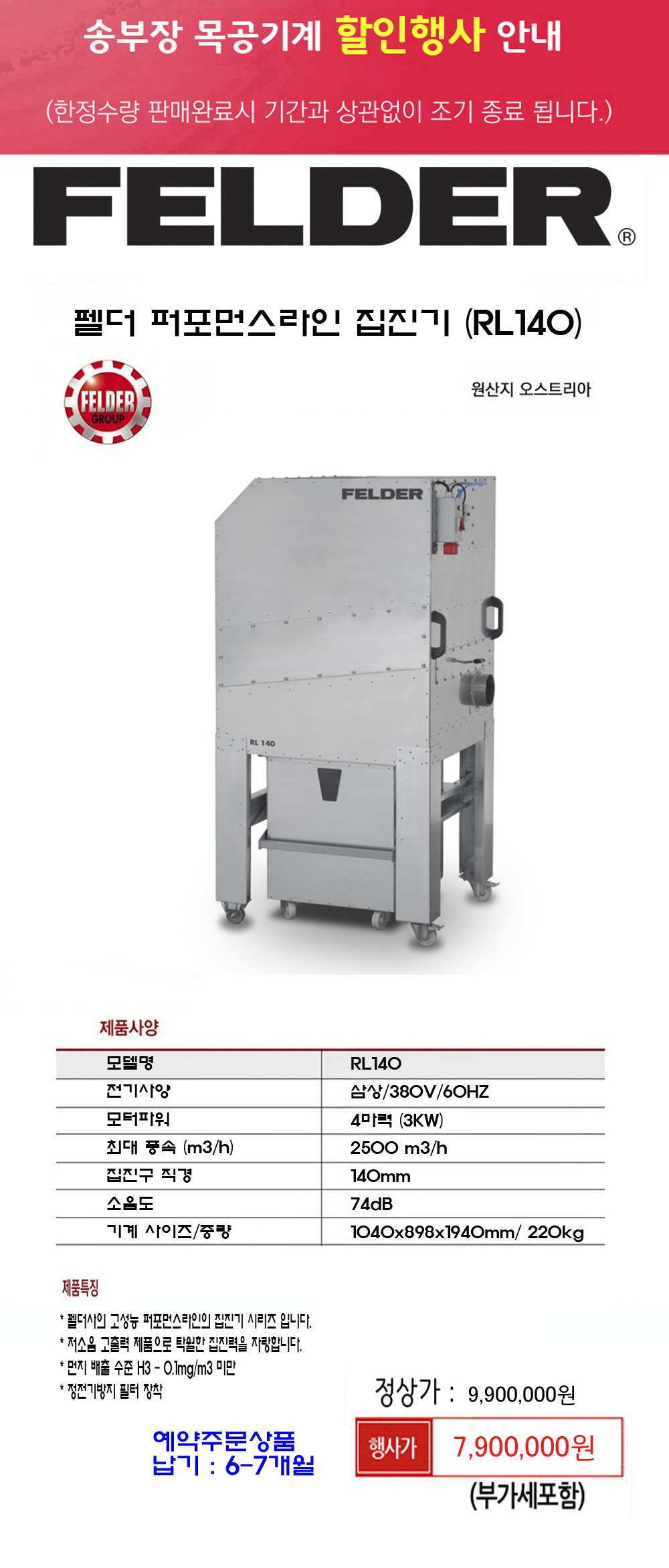 펠더 퍼포먼스라인 집진기 (RL140) : 2조한정 (예약배송상품 : 납기 6-7개월)