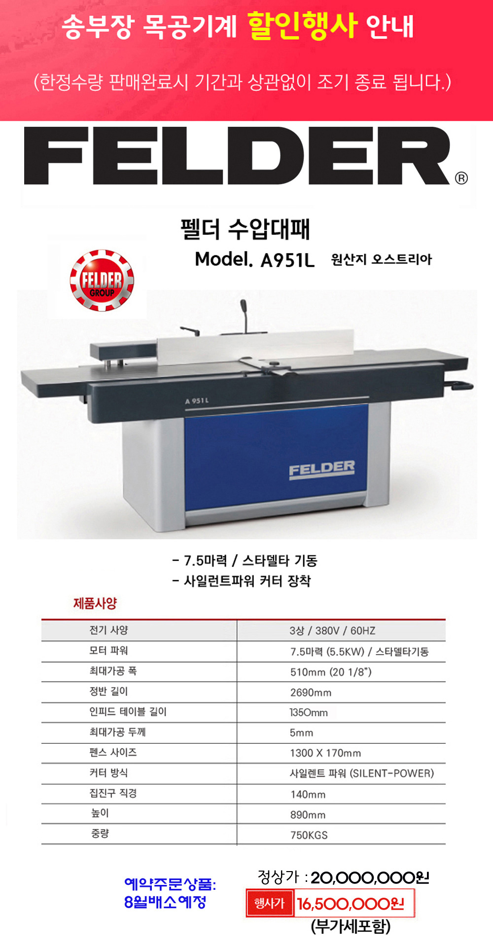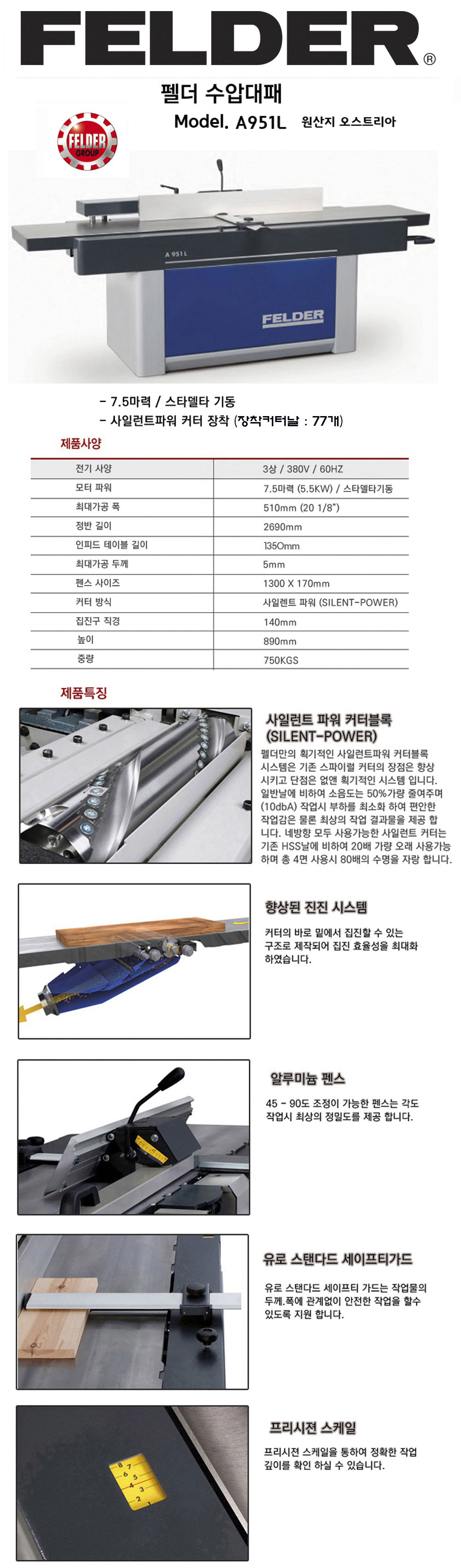 펠더 510MM 사일런트커터파워 수압대패 A951L : 1조한정 (배송상품)