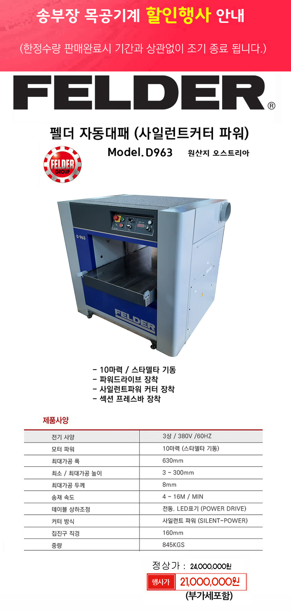 펠더 630MM 사일런트커터파워 자동대패 D963 : 1조한정 (배송상품)