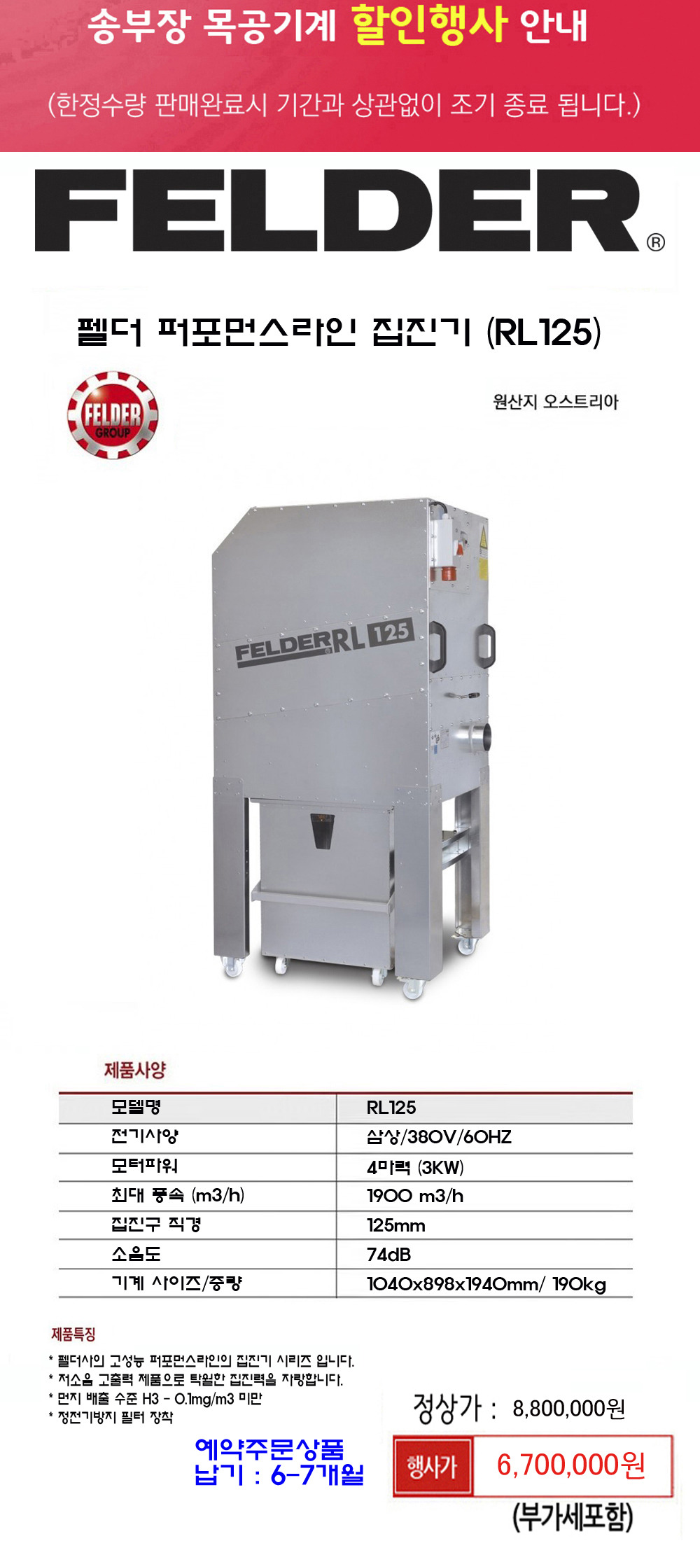 펠더 퍼포먼스라인 집진기 (RL125) : 2조한정 (예약배송상품 : 납기 6-7개월)