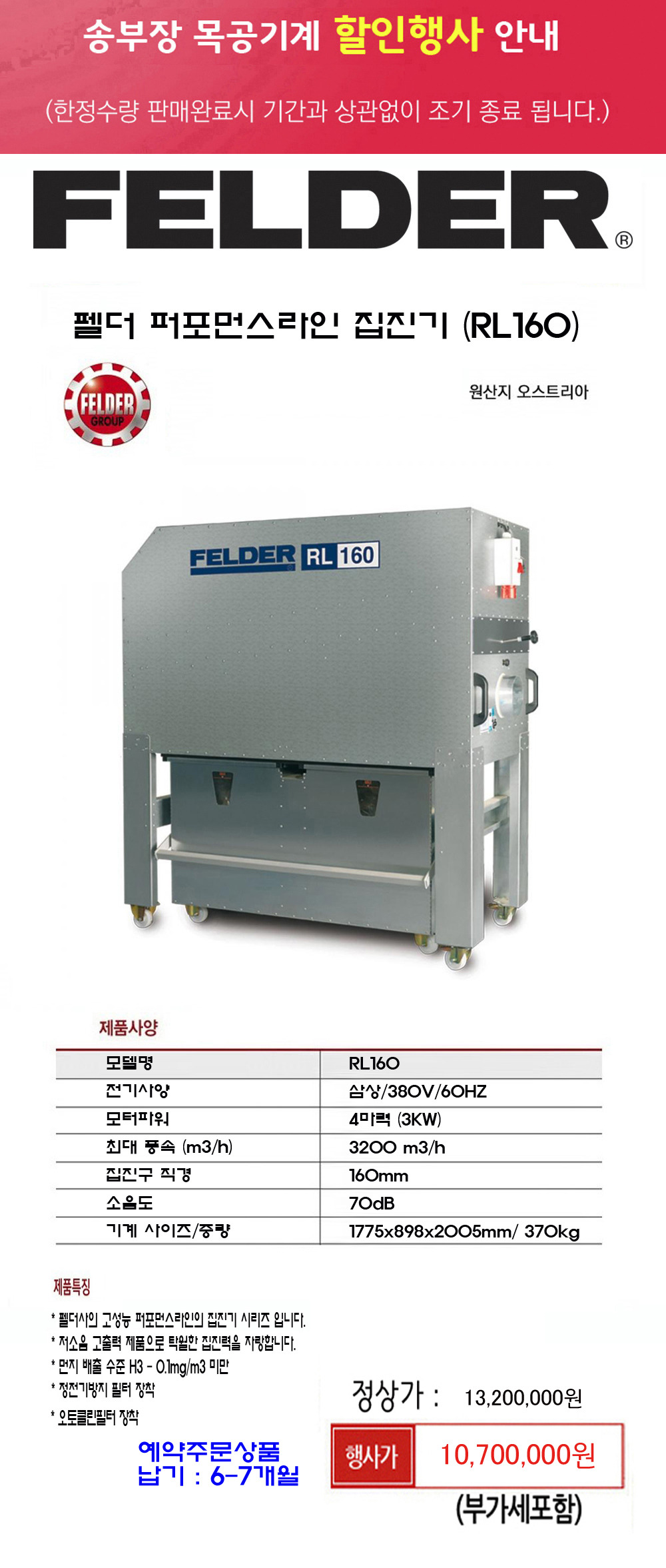 펠더 퍼포먼스라인 집진기 (RL160) : 1조한정 (예약배송상품 : 납기 6-7개월)