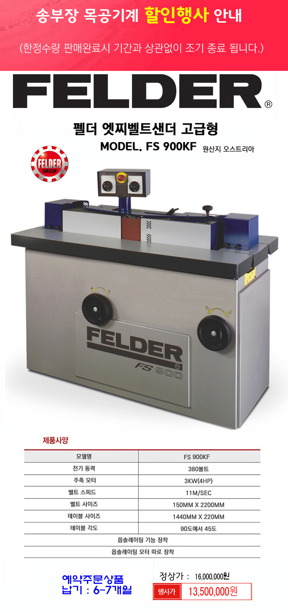 펠더 엣지벨트샌더 FS900KF : 1조한정 (예약배송상품 : 납기 6-7개월)