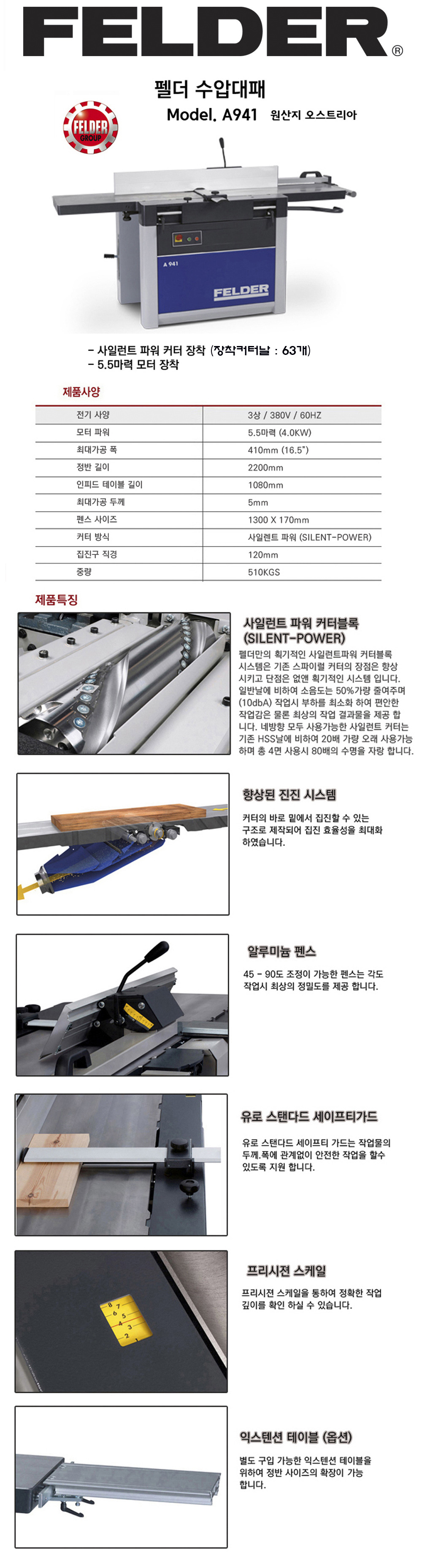 펠더 410MM 사일런트커터파워 수압대패 A941 : 2조한정 (배송상품)