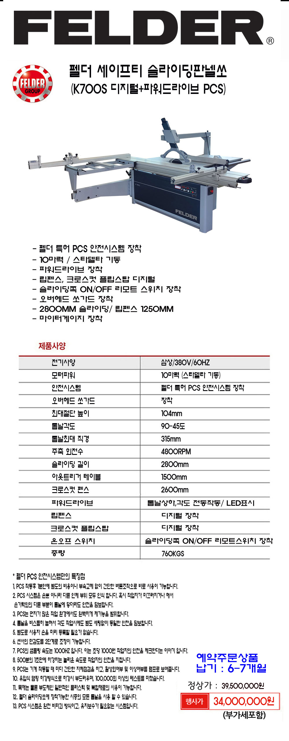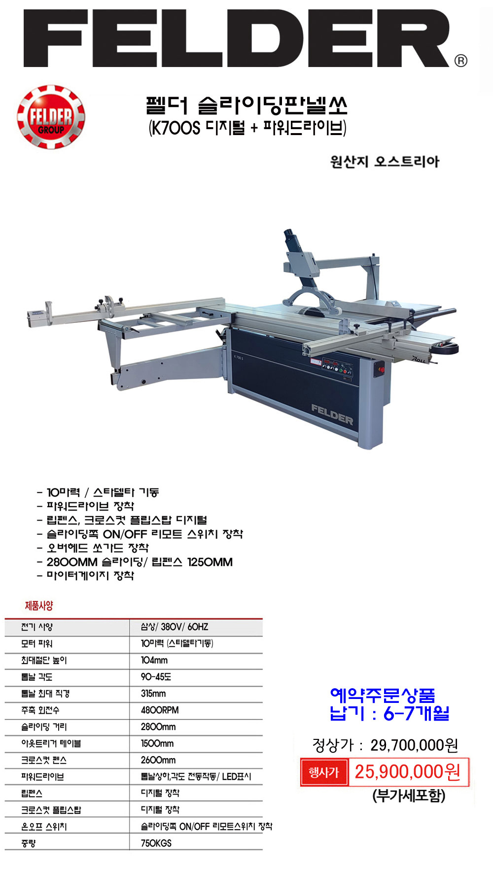 펠더 세이프티 슬라이딩판넬쏘 K700S (디지털+파워드라이브 PCS) : 1조한정 (예약배송상품 : 납기 6-7개월)