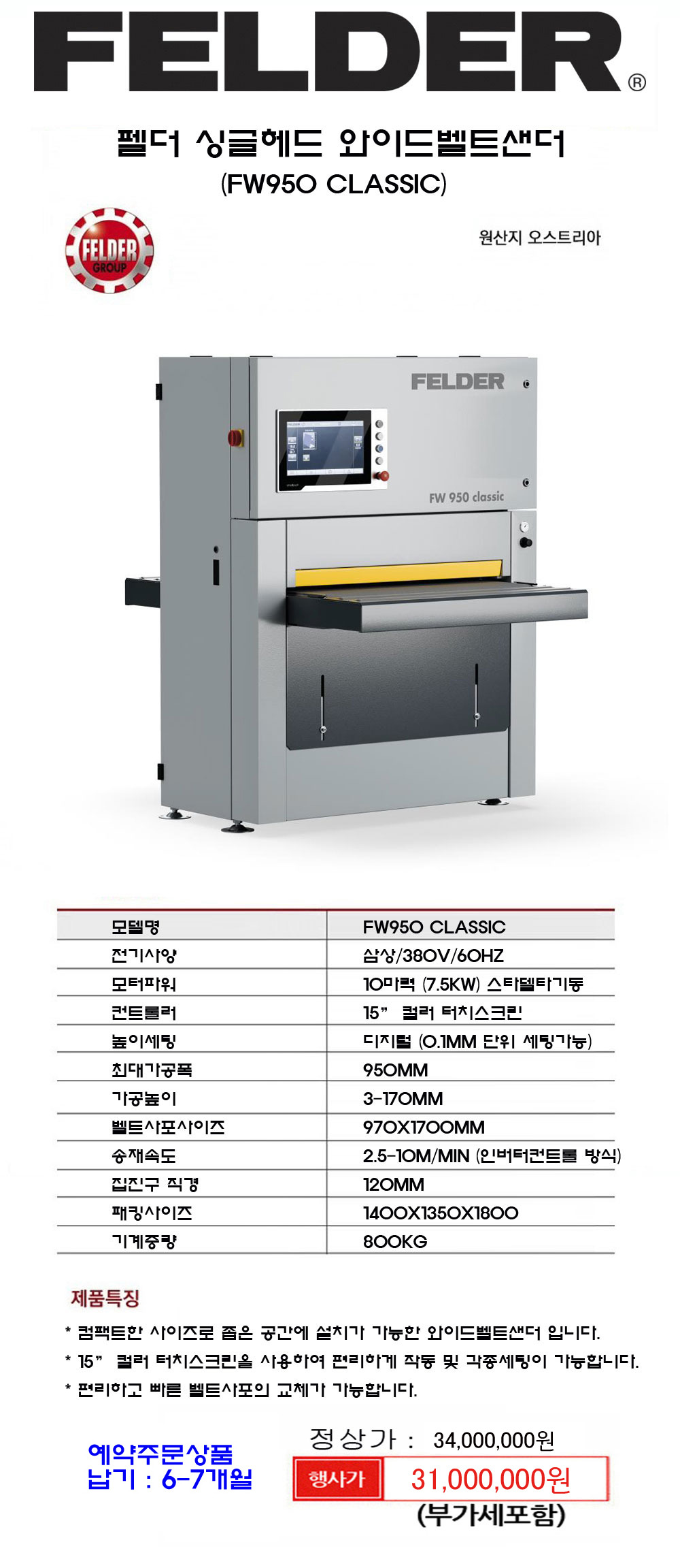 펠더 950mm 와이드벨트샌더 (FW950 CLASSIC) : 1조한정 (예약배송상품 : 납기 6-7개월)