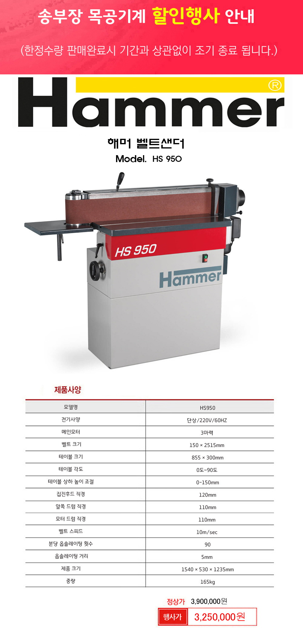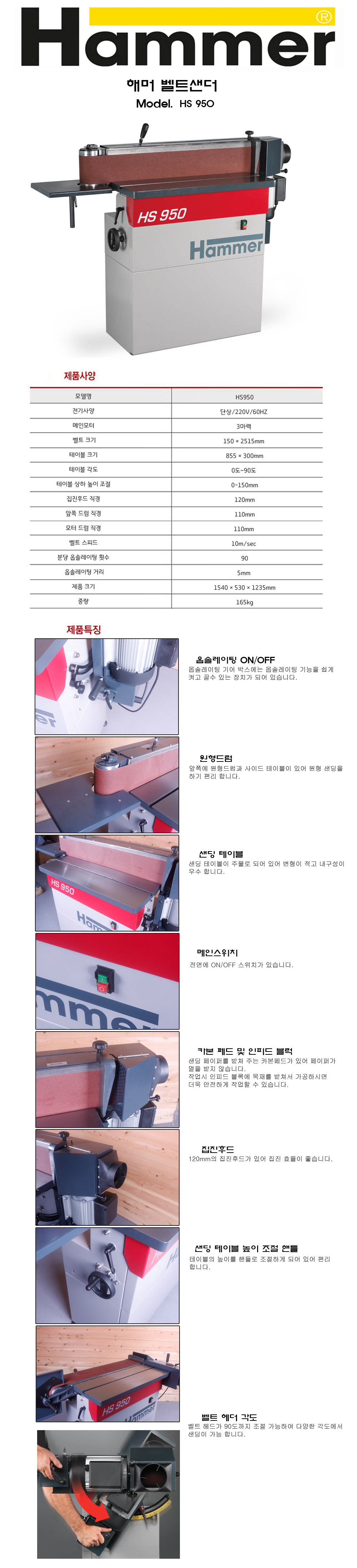 해머 중형 벨트샌더 HS950 : 3조한정 (배송상품)