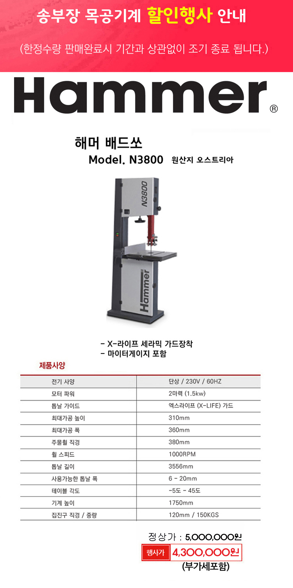 해머 밴드쏘 N3800 : 2조한정 (배송상품)