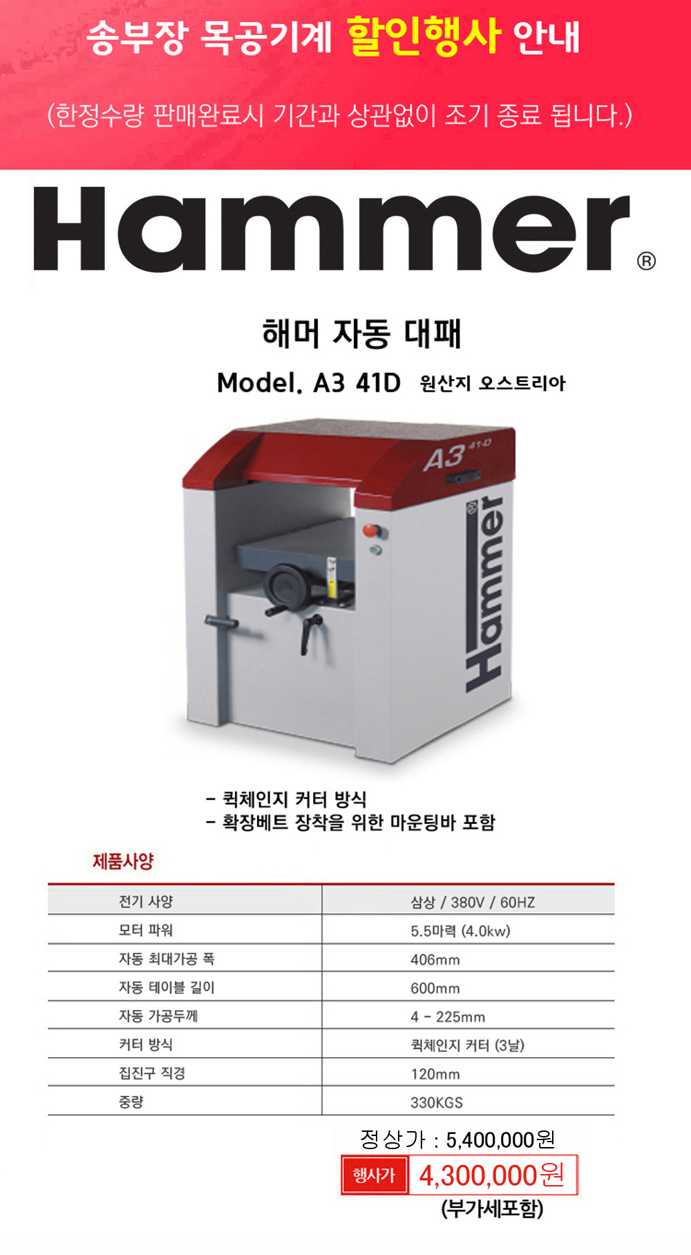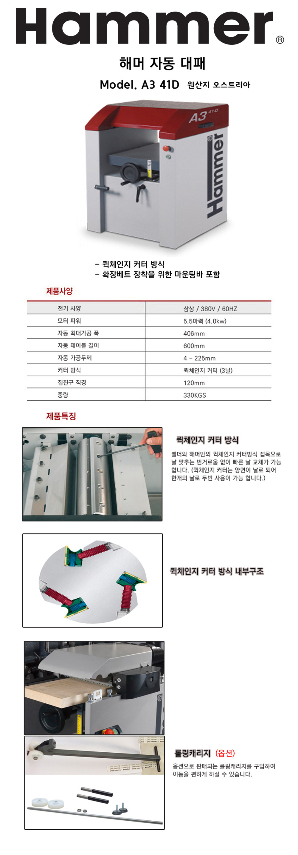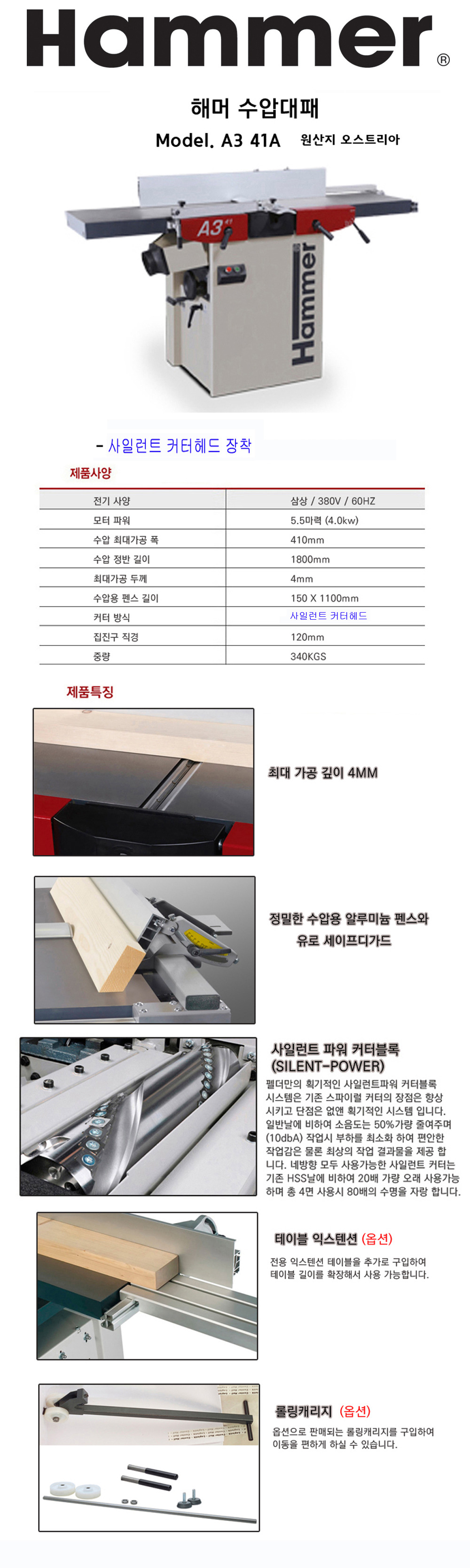 해머 410MM 사일런트커터파워 수압대패 A341A : 2조한정 (배송상품)