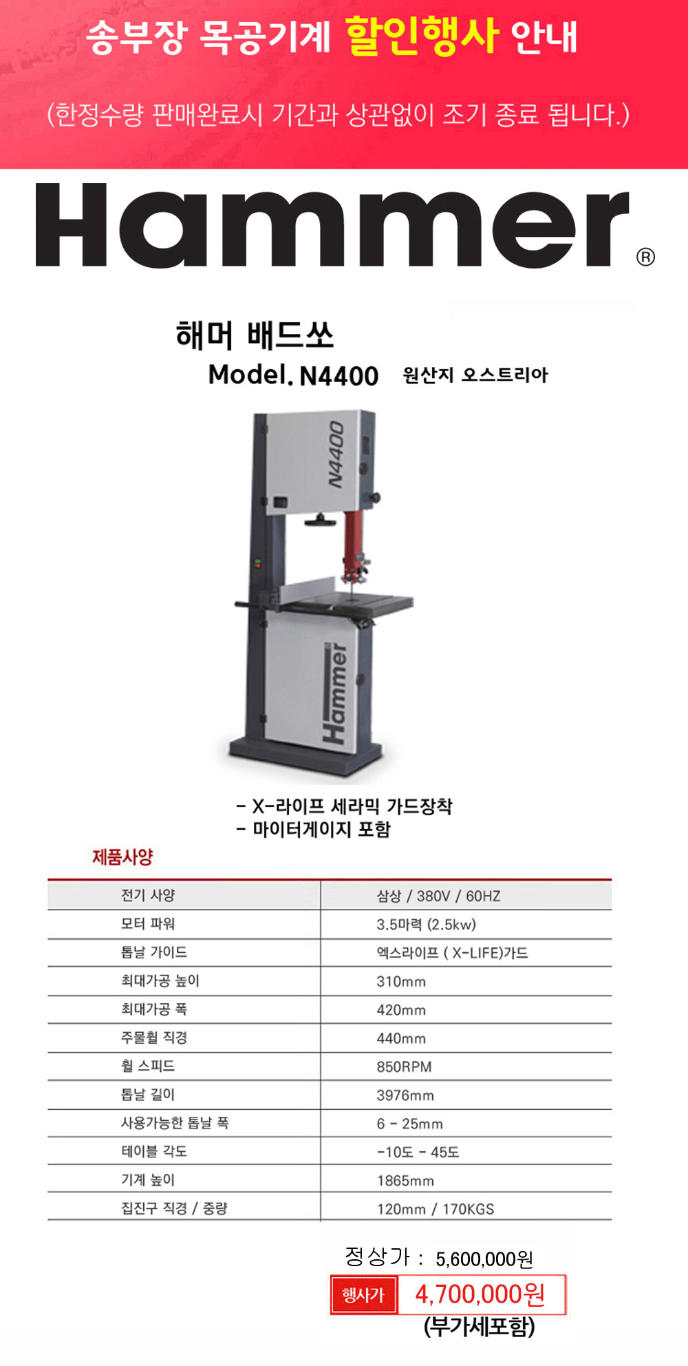 해머 밴드쏘 N4400 : 2조한정 (배송상품)