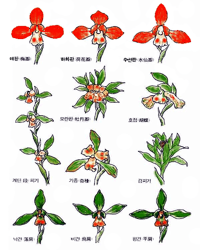 일반적으로 하나의 꽃대에서 하나의 꽃을 피우는 일경일화를 란 이라 부르고 하나의 꽃대에서 여러 개의 꽃을 피우는 일경다화를 혜라 부른다.
