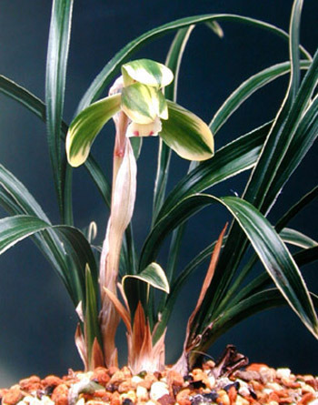 ▶ 엽예품과 신아관리 : 신아관리는 가는게 깍은 대나무나 비닐로 싼 가는 철사나 알미늄사를 이용하여 교정하여 주어야 하며 후발색의 난은 오전 햇빛을 조금 씩 주기 시작하여 늦은 가을에 무늬를 완성시키도록 관리한다.