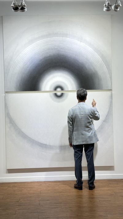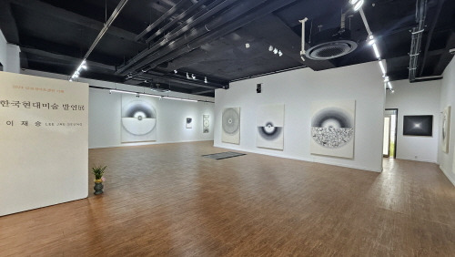 | 이재승 展 한국현대미술발언展 Imagery - Meditation 2024. 6. 2(일) ▶ 2024. 6. 16(일) 서울특별시 종로구 평창36길 20 | T.02-396-8744 한국현대미술 발언 - 이재승 작가의 현대 수묵 수묵은 담백하고 소박하다. 먹과 물로 표현함에 절제와 여백을 논하는데 비대해질 수없는 재료의 간결함이 숨길수 없다. 먹의 농담으로 무게를 표현하고 질감과 깊이로 공간을 설계하는 여백의 미학은 가혹할 만큼 빈틈을 허용하지 않는다. 순간의 붓질이 생명이 되고 감정과 정신을 표현하는 것은 무사의 칼끝처럼 호흡을 다스리지 않으면 안되는 내공을 가늠할수 있다. 먹과 물의 양으로 즉흥적 또는 생각조차 가담하지 않아야 ‘규율의 경계’ 넘어지지 않는 수묵의 도도함을 느낄 수 있다. 수정이 불가능하지 않을 뿐더러 짧은 시간에 흔적이 구체적 이어야 하기에 투쟁적이고 목숨을 건 전투라고 할수 있다. 에서스(Essers)는 여기에서 정확하게 "에너지의 흐름을 경도하는 계획된 몸짓"이라고 한다. 수묵의 선은 어디에서 생겨났을까. 선(禪)의 미학적인 원칙은 도덕적인 자연 철학과 결합하여 모더니즘의 영향 일수 있고, 이러한 원칙은 대상의 숭고한 소박함에 대한 내적 안정과 원만함에 대한 노력에 의하여 표시되었다. 학문적인 그림의 견지에서, 장식적 예술의 견지에서 또는 일시적인 느낌의 견지에서 동양의 수묵에 대하여 마크 토베이(Mark Tobey)는 명상적인 세계관을 총괄하는 것으로 이해했다. 노자 사상은 모든 것에서 하나의 흐름을 본다. 그곳에서 음과 양의 대립과 낮과 밤의 대립이 생겨나고, 이러한 것들이 가장 작은 것에서, 개별적인 것에서, 그때그때의 우주 중심이 찾아 진다는 선이라는 사상이 생겨난다. 그럼에도 불구하고 미술 평론가 힐톤 크라머(Hilton Kramer)는 수묵에 대하여 '신-표현주의적 운동'으로 했다. "쉽게 읽어낼 수 있는 내용과 투명성 은 그 자리에서 비난받았던 것이 현대에 이르기까지 이어졌고, 자칫 우리 주변에서 조차 수묵에 대한 지식과 이해가 높지 않다. 현대인들이 회화에 대하여 너그러움과 이해안되는 것에 대하여 자신에게 책임을 전과하지만, 수묵에 대하여 폄하하며 결론을 내리는 이유는 무엇일까. 현대수묵화가 이재승 작가의 작업은 접근이 어렵지 않지만 대중이 쉽게 속내를 드러내지 못한 것은 쉽지 않은 단순함이 주는 단단한 골격이다. 수묵에 대하여 "보이지 않는 것을 보이게 하다"라는 개념은 수묵화에서의 간결함과 여백의 미학이 현대미술에 어떻게 적용될 수 있는지. 여백은 단순한 공백이 아니라 강력한 표현의 수단으로 대중으로 하여금 그림 밖의 무한한 가능성을 상상하게 한다. 한편, 미메시스 이론에 "모방"의 개념을 재해석하여 현대미술에 적용하며, 그는 전통 수묵이 자연을 모방하는 과정에서 독창적인 아름다움을 창출한다고 보며, 이러한 접근 방식이 현대미술에 어떻게 새로운 창조성을 불어넣을 수 있는지. 노자에 의하면, 모방은 단순히 기존의 것을 재현하는 것이 아니라, 새로운 관점과 해석을 통해 기존의 세계를 새롭게 창조하는 행위라고 한다. 노자의 사상에서 중요한 개념은 '무위'이다. 이는 억제되지 않은, 자연스러운 행동을 의미하며, 예술 창작에서도 중요한 원칙으로 작용한다. 예술가가 자신의 의도를 넘어 자연과 하나가 되어 자연스럽게 흘러가게 함으로써, 진정한 창작의 순간을 맞이할 수 있다는 것이다. 이는 예술작품이 단순히 창작자의 의도를 반영하는 것을 넘어, 우주적 질서와의 교감을 통해 더 큰 의미를 전달할 수 있음을 시사한다. 미메시스의 개념은 예술이 현실을 모방하는 것에서 시작하지만, 이는 궁극적으로 현실을 초월하는 데 목적이 있다. 서양 예술에서 이는 종종 물리적, 외적 형태의 재현에 초점을 맞추지만, 동양 예술, 특히 이재승의 수묵화에서는 더 깊은 정서적, 내적 진실을 포착하려는 시도로 나타난다. 이재승의 작품에서 선과 점의 놀이는 단순한 형태의 재현을 넘어서, 보는 이로 하여금 그림 속에 숨겨진 의미와 감정을 탐색하게 만든다. 단순한 작품으로서 호락호락하지 않다는 것이다. 어쩌면 장르를 구분하기 앞서 수묵화는 자연과 인간의 깊은 연결을 탐구하는 미술의 한 형식이다. 이 예술을 중요시 하는 것은 물성적인 현상을 넘어서서 그 이면에 존재하는 정신적, 철학적 의미를 포착하는 것이다. 특히 한국화에서 볼 수 있는 ‘접화군생’이나 ‘발묵’, ‘묵화’와 같은 기법들은 단순한 표현을 넘어서 정신적 깊이와 명상의 순간을 시각적 언어로 변환시키고 있다. 노자의 도덕경에서 영감을 받아 ‘선’의 개념을 통해 우주적 진리와 생명의 근원을 탐구하며, ‘선’은 끊임없는 흐름 속에서 발견되는 자연의 질서와 조화를 상징하며, 이는 곧 인간이 자신의 내면과 외부 세계를 이해하는 데 중요한 열쇠를 제공한다. 이재승 작가는 붓을 사용하여 종이나 비단 위에 수묵으로 세상의 소리와 우주의 정신을 담아내려한다.이 과정에서의 명상은 단순한 사유의 행위가 아니라, 자연과의 교감을 통해 우리 자신의 본질을 깨닫는 경험으로 증폭된다. 그래서 모든 작업은 철학적 정신적 내공에 의하여 결정되는 순간의 미학을 