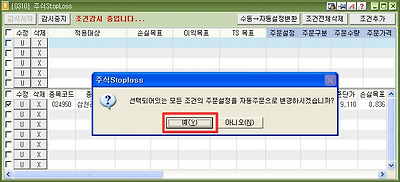 그리고 '수동→자동설정변환'을 누르시면 아래와 같은 창이 나옵니다. 자동주문으로 변경하는 것이니 '예(Y)'를 누릅니다.