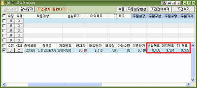 이렇게 매도세팅이 완료되었습니다. 아래 그림을 보면 손실목표가와 이익목표가, 그리고 TS목표가가 보이실 것입니다.