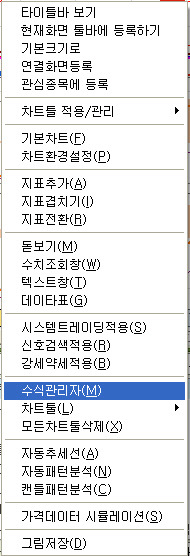 1. 차트에서 마우스 오른쪽 버튼을 누르고 마우스 왼쪽 버튼으로 수식관리자를 클릭하세요.