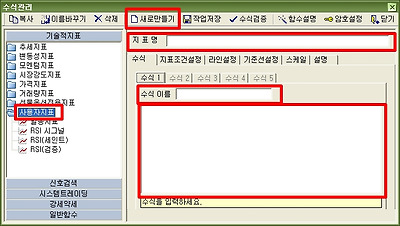 2. 기술적지표의 사용자지표를 클릭하시고 새로만들기를 클릭하세요.