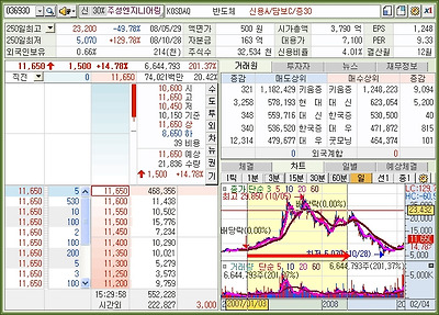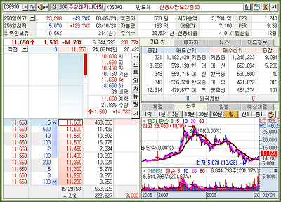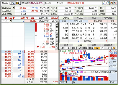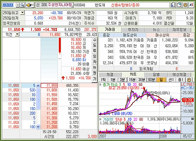 안녕하세요. 세인트입니다. 금일 성투중이신지요? 금요일에 도착한 ATI 2600PRO AGP방식의 그래픽카드, 그리고 1800*1000 책상... 먼저 방을 정리하고 20년도 넘은 책상을 창고에 보관하고 방을 깨끗이 청소했습니다. 청소 후 책상을 조립하고, 모니터 두대를 설치했는데 원래 있던 30인치는 잘 나오는데 새로 구입한 23만원짜리 30인치 모니터의 해상도가 1280*800까지밖에 안나오더군요. 원래쓰던 모니터 케이블을 연결하면 2560*1600 해상도가 나와서 케이블 문제라 판단, 동네 컴퓨터 판매점에서 원래쓰던 모니터케이블이랑 같은걸로 샀는데 케이블 불량입니다...-_- 일단 금요일에는 포기를 하고 잠을 청했습니다. 토요일 아침. 자동차 검사를 받고 금촌 하이마트 앞에서 한시간을 기다려 케이블을 사려했는데 재고가 없네요...-_- 에라 모르겠다. 모니터를 구입했던 용산 원효상가로 차를 몰았습니다. 마순이의 창문을 열고 자유로를 시원스럽게 달렸습니다. 초여름의 날씨를 보여 상쾌하더군요. 케이블을 얻어 집에 도착. 점심을 차려먹고 모니터에 연결해보니...드디어 나옵니다. 영웅문을 열어 보고싶은 화면을 세팅하고 화면을 보니 참 편안하더군요... 관심 있으신 분들께서는 저렴한 30인치 모니터를 구입하셔서 트레이딩에 활용해보세요. (참고로 30인치 패널이 단종되었으므로 중고구입이 용이합니다. 다나와 등에서 검색하시면 많은 도움을 받으실 수 있으실 것입니다.) 30인치 모니터를 구입하고자 하시는 분들을 위해 경험을 알려드리겠습니다. 1. 일단 컴퓨터본체의 그래픽카드가 듀얼링크 DVI가 지원되어야 합니다. 30인치 한대를 쓰신다면 상관없지만, 두대를 쓰신다면 DVI 두개 모두 듀얼링크가 지원되어야 합니다. 참고로 제가 ATI 2400PRO를 사용할때는 DVI 단자 하나만 듀얼링크가 지원되었기에 30인치 모니터를 사용해도 한대만 2560*1600 해상도를 사용할 수 있었습니다. 2. 모니터케이블도 듀얼링크 케이블을 사용하셔야 합니다. 3. 모니터 두대를 설치해보니 일자로 놓는것보다 학익진 형태가 좋습니다. 제가 보는 방향에서는 학익진이 아니라 어린진이라고 표현해야 옳겠습니다. 이상 간략하게 책상과 모니터 구입기를 마치겠습니다. 비용은 책상 85,000원, 서랍 32,000원, 배송료 23,000원, 중고 30인치 모니터 23만원 정도 들었습니다. 참고용으로 2560*1600화면 두개를 연결한 5120*1600 화면을 보여드릴께요. 있는 그대로 보여드리기 위해 원본을 올리니 보기 힘드시더라도 양해 바랍니다. 즐거운 하루 되세요~