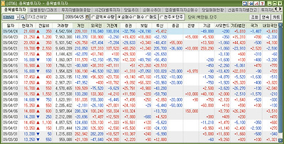 - 기관계 : 증권, 보험, 투신, 종금, 은행, 기금, 사모펀드의 순매수 수량입니다. 각각에 대해서는 아래에 자세히 설명합니다.