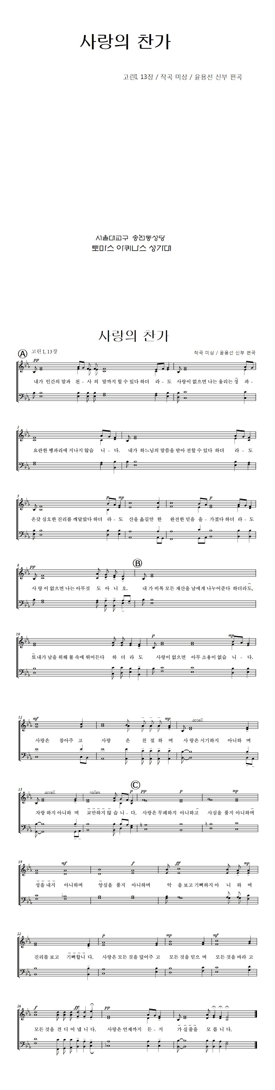 [스크랩] [수녀님 송별곡] 사랑의 찬가 (윤용선 편곡) - 연중 제6주일 (2.13_20 작성자이홍필(요아킴)|작성시간20.02.21|조회수404 목록 댓글 0 글자크기 작게가 글자크기 크게가 사랑의 찬가 - 2.16_20.mp3 첨부파일첨부된 파일이 2개 있습니다. jpg 파일 사랑의 찬가 (윤용선 편곡).jpg 다운로드 mp3 파일 사랑의 찬가 - 2.16_20.mp3 다운로드 다음검색 스크랩 원문 : 서울대교구 송천동성당 토마스 아퀴나스 성가대 현재 게시글 추가 기능 열기 북마크 공유하기 신고 센터로 신고 댓글 댓글 0 댓글쓰기 답글쓰기 댓글 리스트