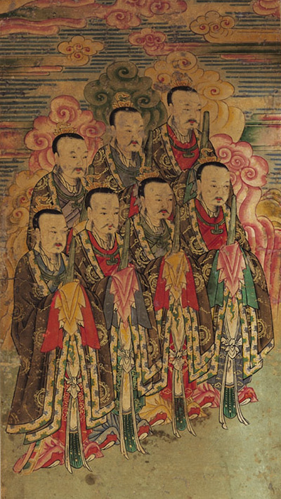 北斗第八洞明外辅星君,北斗第九隐光内弼星君,上台虚精开德星君,中台六淳司空星君,