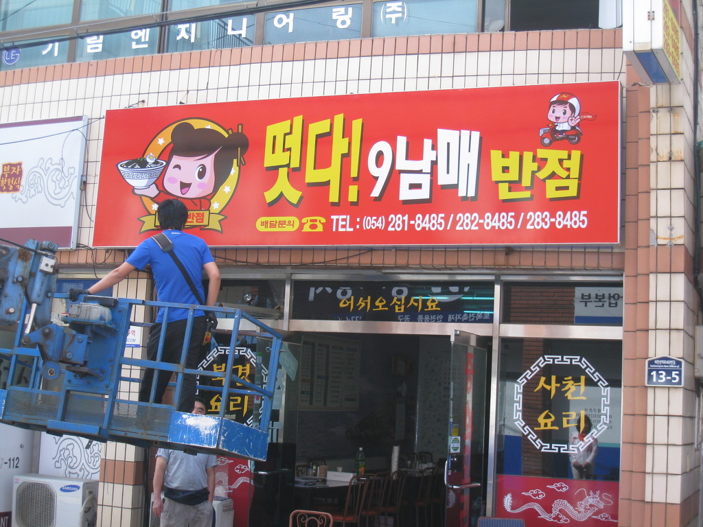 * 새로운 간판 "떳다 9남매 반점"을 올리고....