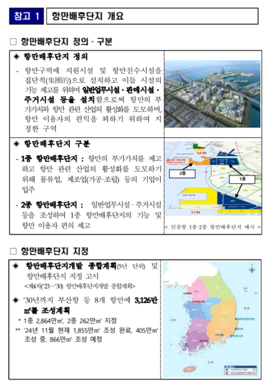 | 인천항·부산항 항만배후단지 일부, 공공과 민간 분야로 개발방식 구분·시행 |