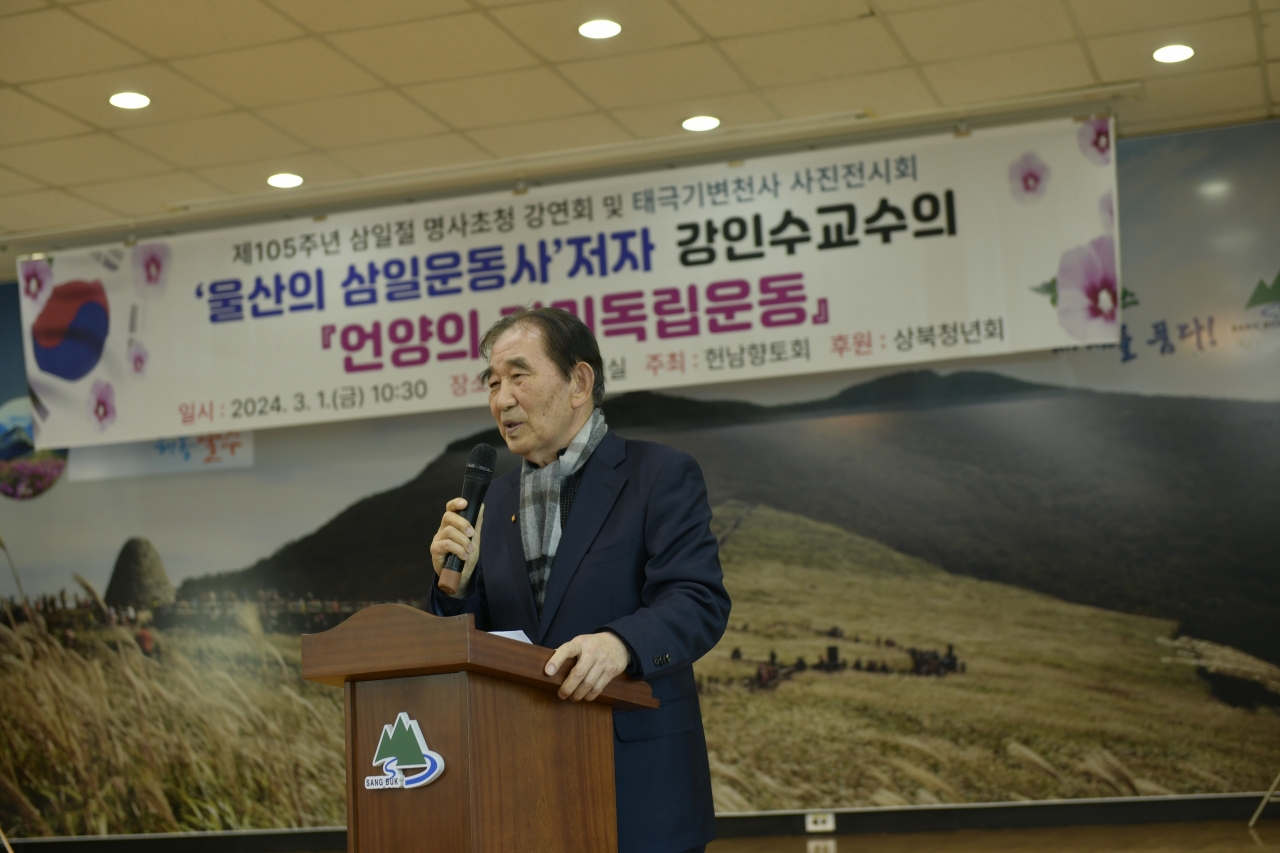 영남알프스에는 서설이 쌓었고 날씨는 차가웠습니다. 면 행정복지센터에서 105회 삼일절 행사에 참석하고 회의실에서