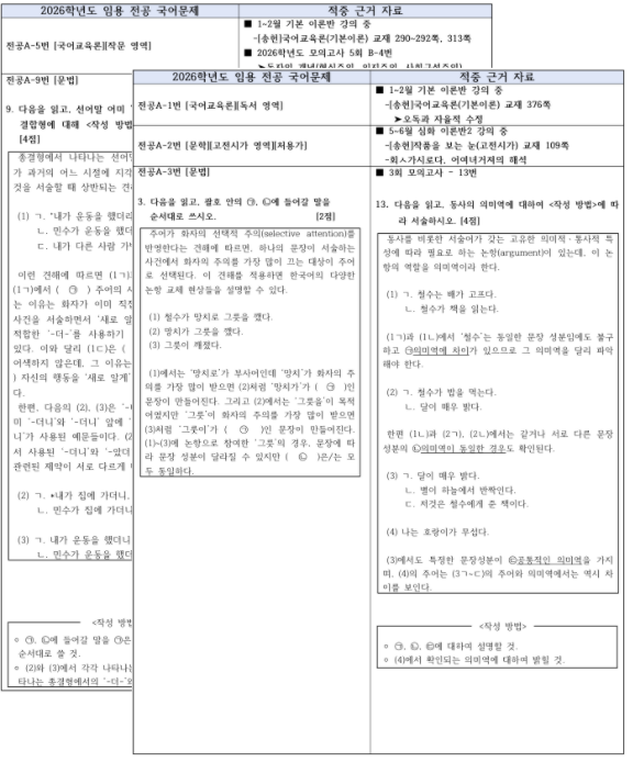 | 선생님께서 강조하신 분석력이 가장 중요했던 시험인 것 같습니다. 당황스러운 문제도 선생님께서 해주신 말씀 기억하면서 교사의 입장에서 서술하고자 노력했습니다. 특히 강조하신 문학 작품이 나온 것을 보고 깜짝 ! 놀랬네요 ㅎㅎ kim*** |