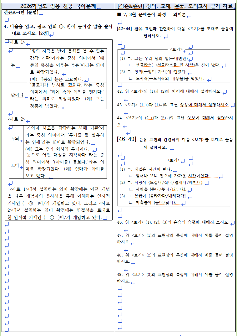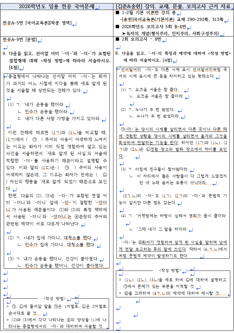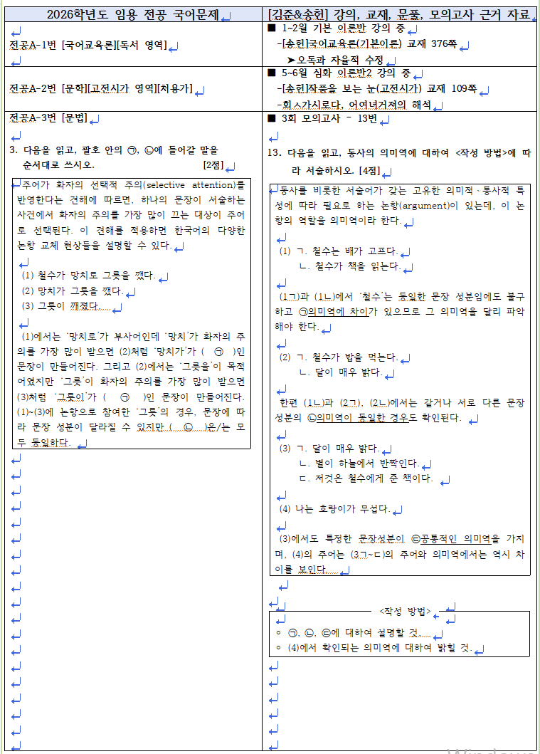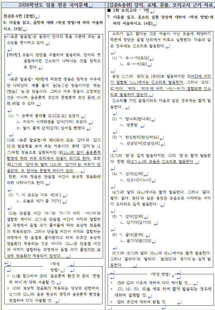 2025년 11월 22일(토)에 시행된 2026학년도 중등학교교사 임용후보자 선정경쟁시험 문항과 관련된 2025년 [김준&송헌] 1~6월까지의 기본 이론반, 심화 이론반1, 2 강의와 교재, 자료, 7~11월 문풀, 모의고사 강의 및 근거 자료입니다. 1년 간 함께 해주신 수강생 여러분 감사합니다. 앞으로도 더욱 좋은 강의로 보답하겠습니다. 감사합니다^^