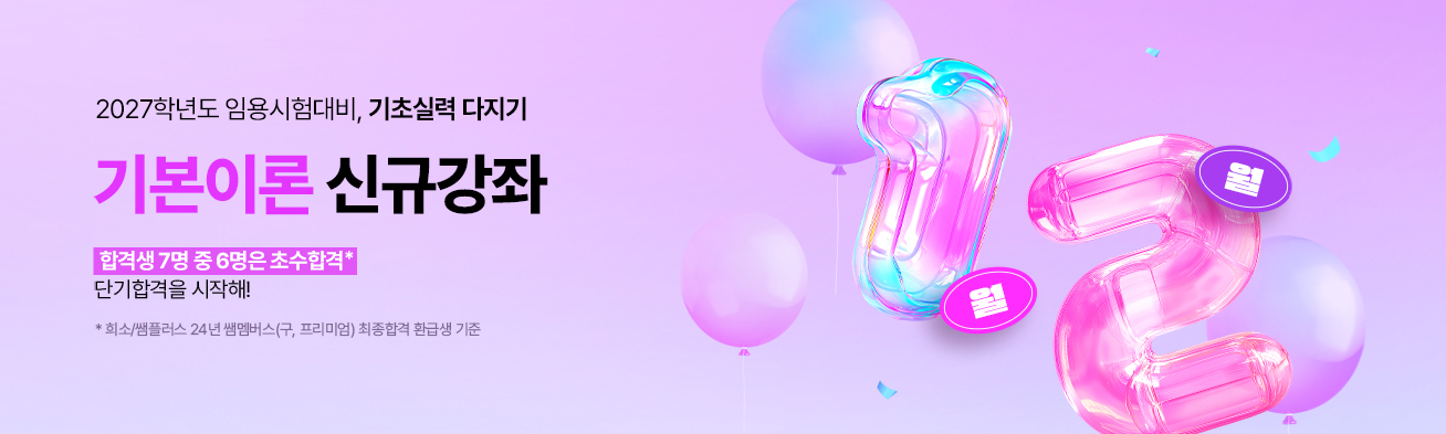 | 2026 신규강좌 연간 최대 할인 혜택 | 2026 신규강좌 패키지 최대 15%, 단과 5% 할인쿠폰! *쿠폰 사용 기간 : 12/9(화)~12/31(수) 배송비 무료쿠폰(~1/12(월)까지 사용 가능) *일부과목 제외 |